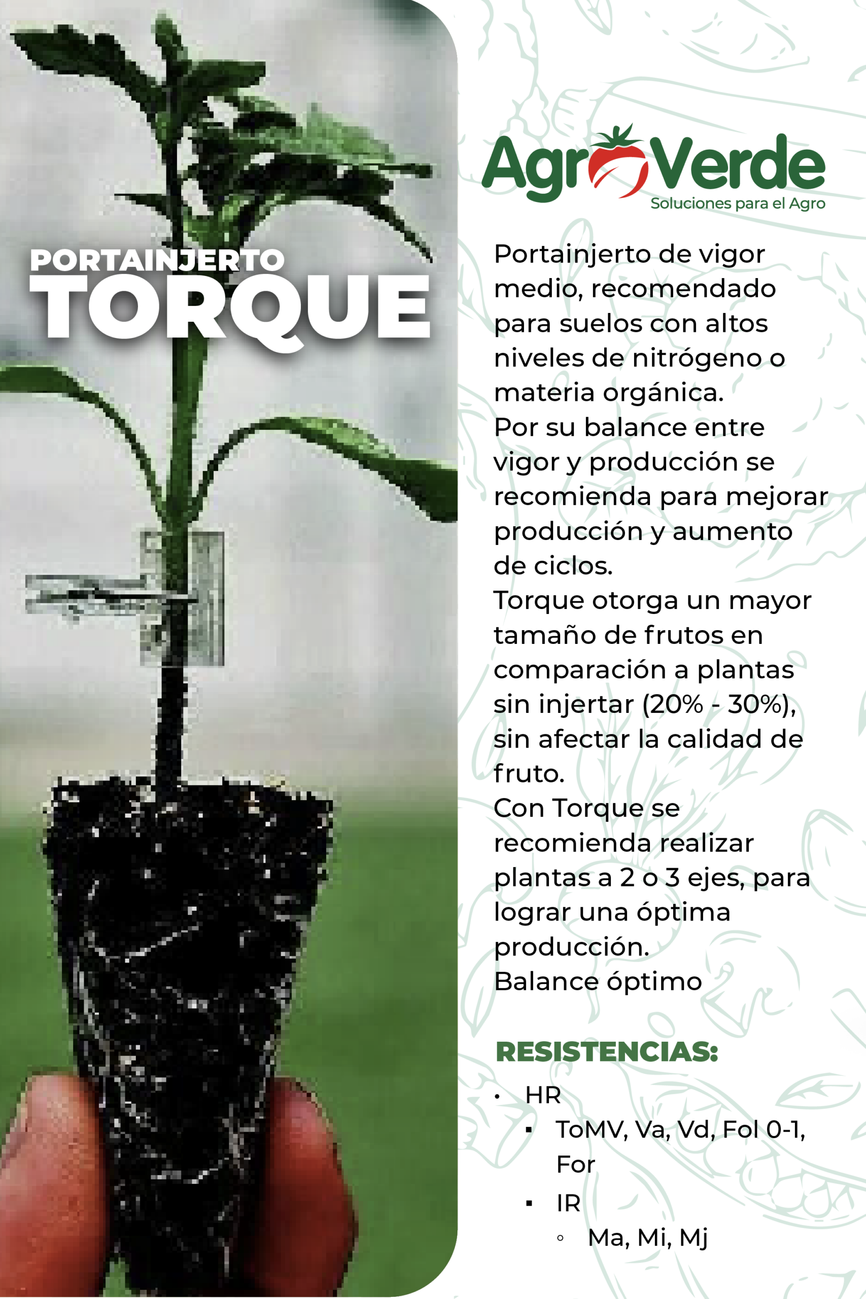 Torque otorga un mayor tamaño de frutos en comparación a plantas sin injertar (20%-30%), sin afectar la calidad de fruto.